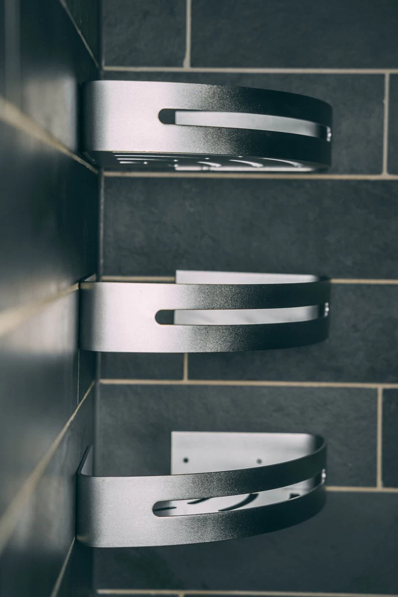 De Sens Design Doucherek set bestaat uit drie doucherekjes van top kwaliteit. De aluminium doucherekjes zijn optioneel te bevestigen zonder te boren. Het unieke en slimme design van de douchrekjes zorgt voor veelzijdige toepassingsmogelijkheden.