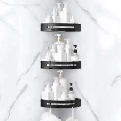 ▶ Praktisch – De doucherekjes worden aangeboden in een set van drie losse doucherekjes. Je kan zelf bepalen op welke hoogte je de doucherekjes bevestigd in de hoek van de douche of keuken. Bovendien is elke bakje voorzien van twee verplaatsbare ophanghaken, zodat je er eventueel ook nog andere spullen aan kan ophangen.
