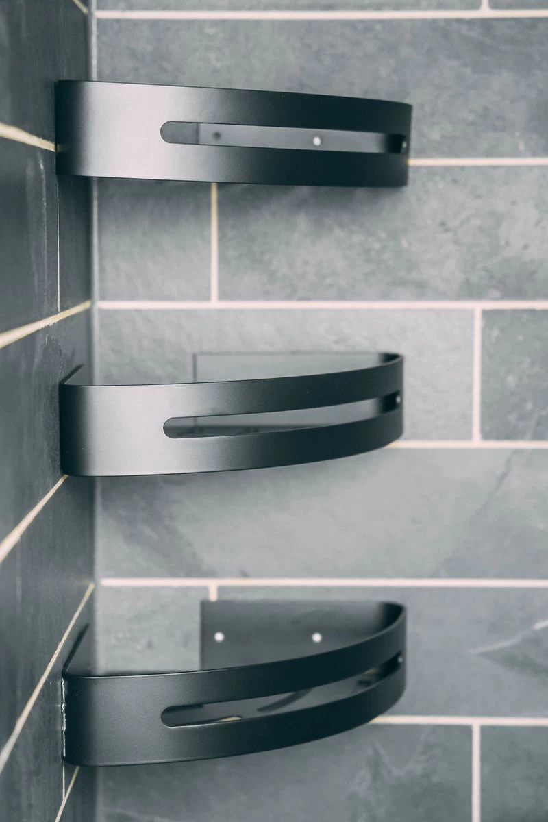 De Sens Design Doucherek set bestaat uit drie doucherekjes van top kwaliteit. De zwarte aluminium doucherekjes zijn te bevestigen zonder te boren. Het unieke en slimme design van de douchrekjes zorgt voor veelzijdige toepassingsmogelijkheden.
