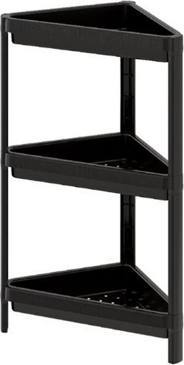 Hoek Badkamerrek / Keukenrek van kunststof met 3 etages. Speciaal gemaakt voor gebruik in de badkamer of keuken. Creëer Makkelijk en snel extra opbergruimte.