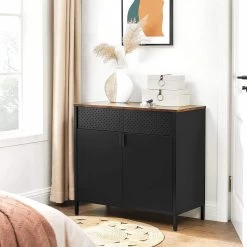 • Voor een stijlvol huis: Rustiek bruin houten blad, zwart metalen frame – deze lieve eenheid zorgt voor een karaktervolle industriële opbergkast