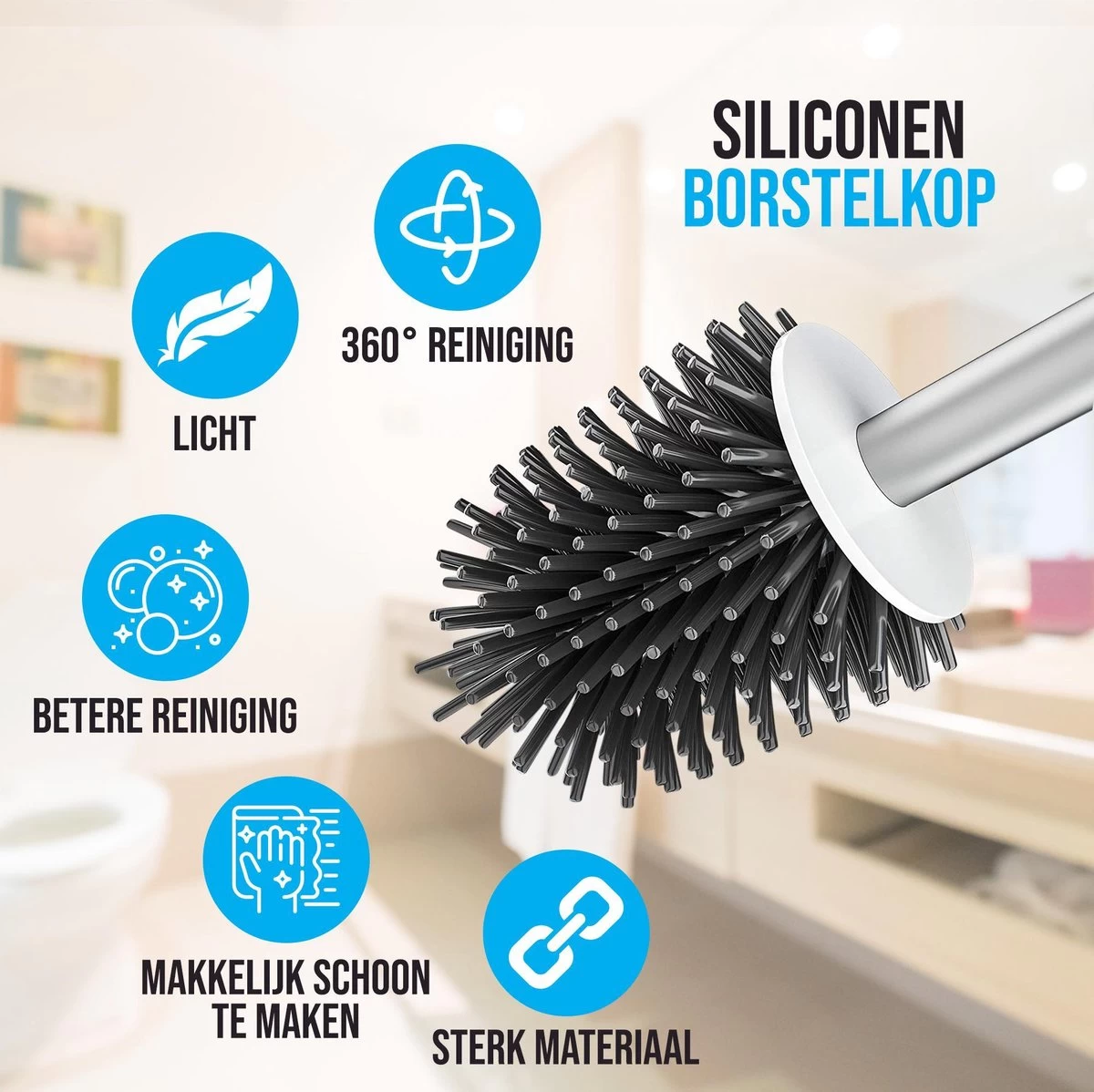 Jouw toiletborstel is voorzien van een antislip handvat en biedt jou een comfortabele grip tijdens het schoonmaken. De silicone borstelharen zorgen voor een snellere en betere reiniging van het toilet en voorkomen ongewenste krasjes. Daarnaast is de houder extra stabiel en stevig ontworpen zodat jouw toiletborstel nooit meer om zal vallen.