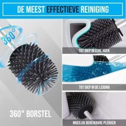 Jouw toiletborstel is voorzien van een antislip handvat en biedt jou een comfortabele grip tijdens het schoonmaken. De silicone borstelharen zorgen voor een snellere en betere reiniging van het toilet en voorkomen ongewenste krasjes. Daarnaast is de houder extra stabiel en stevig ontworpen zodat jouw toiletborstel nooit meer om zal vallen.
