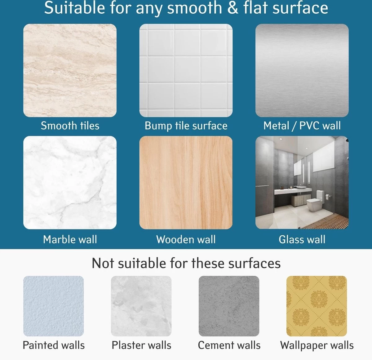 ✔ Geschikt voor iedere vlakke ondergrond; deur, hout, glas, spiegel, wand, kast, tegels etc!