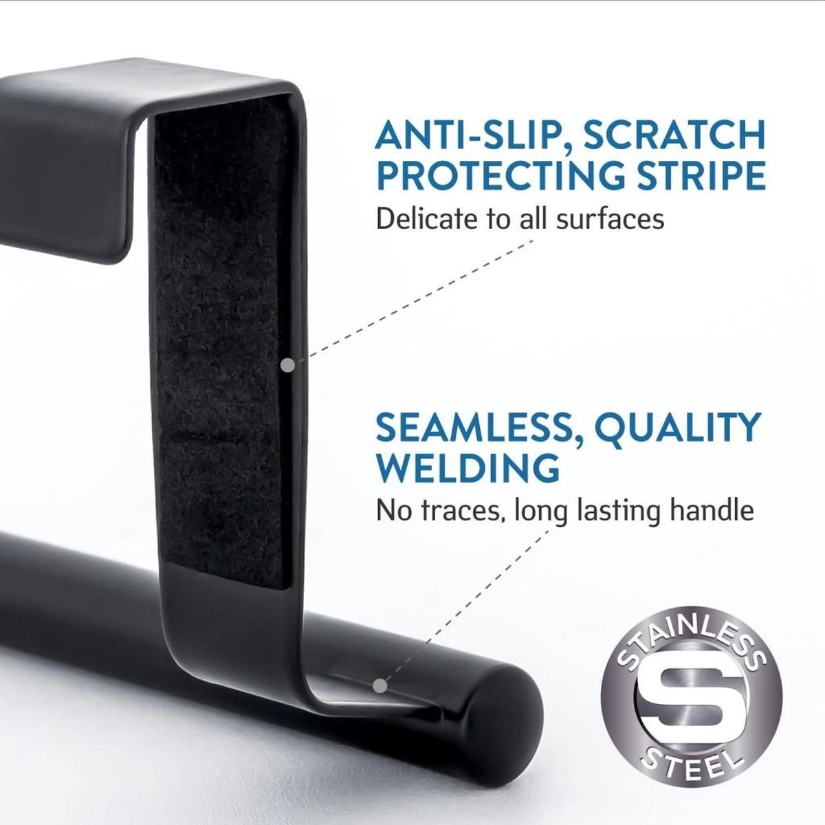 Met deze handige handdoekhouder heb je altijd plek voor je handdoeken of theedoeken. Handig voor in de keuken, badkamer en zelfs voor op het toilet. Het rek heeft een universele maat, waardoor het past op verschillende maten kastdeuren. Het rek hoef je niet te monteren, maar hang je eenvoudig aan de kastdeur. Dus geen vervelende gaten in de muur. Bovendien is het rek voorzien van een anti-slip strip waardoor het rek niet verschuift en er geen krassen kunnen ontstaan. Dankzij het roestvrij staal gaat het rek lang mee en geeft het materiaal niet af op de handdoeken.