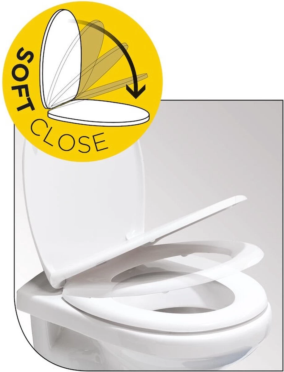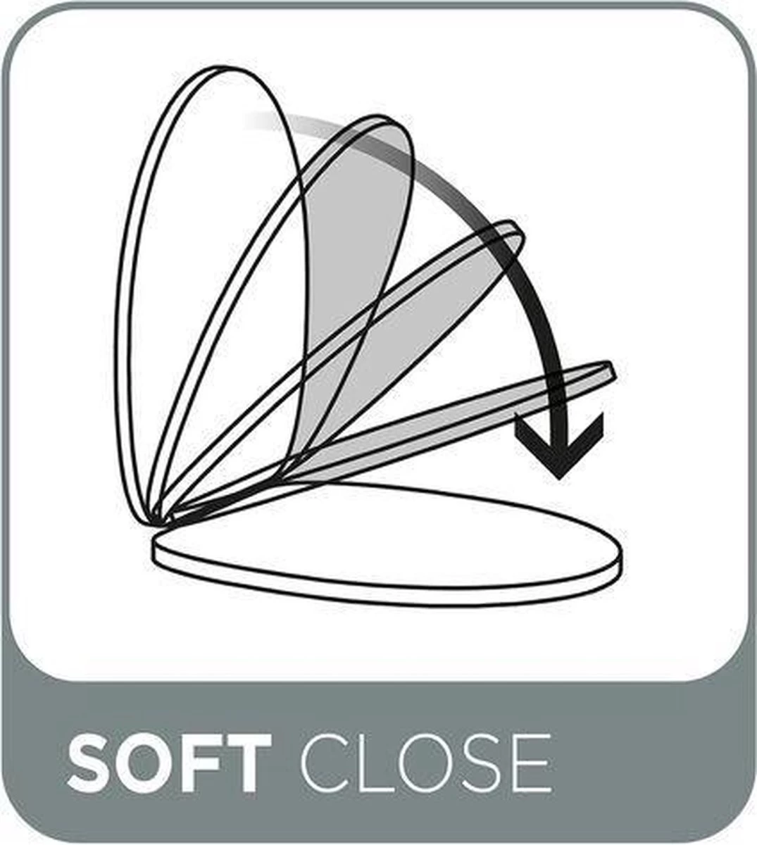• Softclose sluiting: door de speciale scharnieren valt de toiletbril fluisterzacht neer. Wel zo rustig en veilig voor kleine vingertjes. De dempers voorkomen schade aan het keramiek van de toiletpot