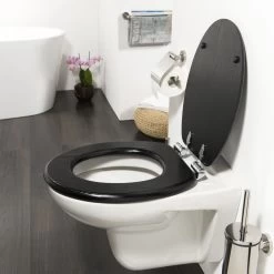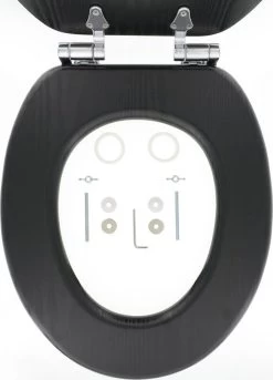 Deze stijlvolle zwarte wc-bril is voorzien van een houtnerf wat een matte uitstraling geeft die past in iedere badkamer of toilet. De Tiger toiletzitting Blackwash is gemaakt van MDF en is een comfortabele toiletzitting, doordat de zitting snel je lichaamstemperatuur opneemt. De softclose sluiting zorgt ervoor dat de deksel en zitting zacht en geruisloos dichtvallen en voorkomt beschadigingen aan het keramiek. Het reinigen van de wc-bril gaat eenvoudiger doordat zowel de onderzijde als de bovenzijde geheel vlak zijn en geen moeilijk bereikbare hoekjes hebben. Voordat je jouw wc-bril gaat vervangen, is het raadzaam om ook even de lijntekening van dit artikel te bekijken. Hierop staan alle benodigde formaten en als deze overeenkomen met jouw toiletpot ben je verzekerd van een stevige en passende bevestiging.