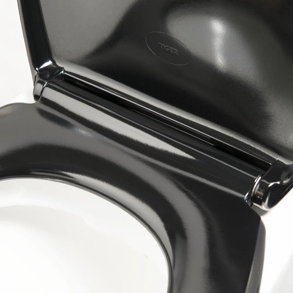 Eenvoudig maar stijlvol, uitgevoerd in de kleur zwart. De Tiger wc-bril Ventura is gemaakt van duroplast en is krasvast. Deze wordt bevestigd vanaf de bovenzijde van het toilet waardoor onhandig schroeven vanaf de onderzijde van de pot verleden tijd is. De softclose sluiting zorgt ervoor dat de deksel en zitting zacht en geruisloos dichtvallen en voorkomt beschadigingen aan het keramiek van de toiletpot. Het reinigen van de toiletzitting gaat eenvoudiger doordat deze door middel van het Easy Clean mechanisme eenvoudig van de RVS bevestigingsset te verwijderen is. Voor het vervangen van een wc-bril is het raadzaam om ook de lijntekening van dit artikel te raadplegen. Hier op staan alle formaten en als deze overeenkomen met de toiletpot ben je verzekerd van een stevige bevestiging.