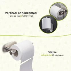 Liever niet boren omdat je bang bent om de muur te beschadigen? Deze zilveren WC rol houder hang je eenvoudig op met de zelfklevende achterzijde, zonder dat je gereedschap nodig hebt. Klaar de klus binnen 1 minuut! De houder blijft stevig zitten, ook wanneer je jarenlang toiletpapier afscheurt.