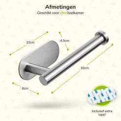 Deze wc rol houder is voorzien van 3M tape. Hierdoor is de achterzijde zelfklevend en bevestig je de toiletrolhouder eenvoudig zonder te boren. De 3M tape zorgt dat de houder stevig blijft zitten én laat geen gaten achter in de muur.