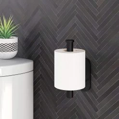 Deze stijlvolle zwarte toiletrolhouder is een aanwinst in ieder interieur. De wc-rol kun je eenvoudig plaatsen en vervangen en de houder kun je zowel horizontaal voor gebruik of verticaal voor een reserverol aan de muur bevestigen. Een ander voordeel van deze toiletrolhouder is dat monteren gaat door middel van krachtige zelfklevende 3M tape, je hoeft dus geen gaten te boren in je muur of tegels.