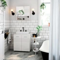 - Bewaar al je badkamerspullen in deze kast met spiegel