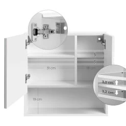 Dankzij deze kast met 2 verstelbare planken, een spiegel en een open plank, kunt u zich verheugen op relaxte ochtenden met alles binnen handbereik.