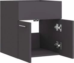 Deze kast is gemaakt van spaanplaat, waardoor hij stevig en stabiel is. De opbergkast heeft 1 vak en 2 deuren en biedt voldoende ruimte om spullen in je badkamer op te bergen. Het blad is ideaal voor het plaatsen van een wastafel. De kast is gemakkelijk schoon te maken met een vochtige doek.