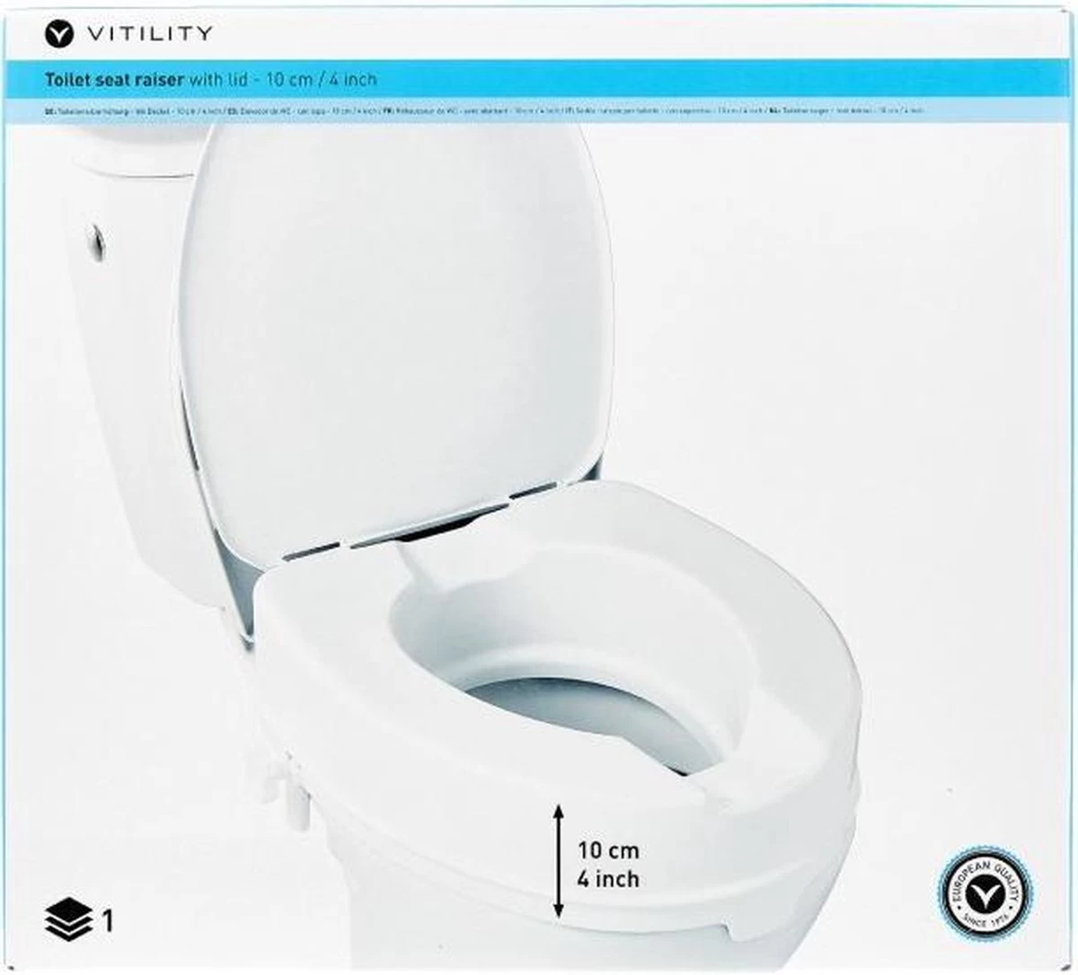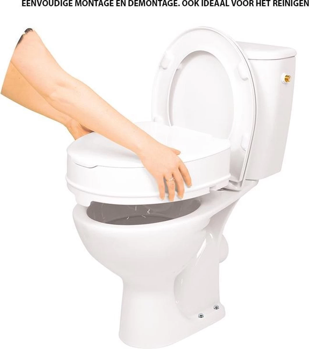 De toiletverhoger met deksel is eenvoudig en stevig op vrijwel ieder toilet te installeren en weer te verwijderen. De toiletverhoger verhoogt het toilet met 10 cm., waardoor het gaan zitten en het opstaan makkelijker wordt. De verhoger is eenvoudig te reinigen. De deksel is eventueel eenvoudig te verwijderen. De hierbij ontstane openingen in de verhoger kunnen middels bijgeleverde dopjes worden afgedekt.