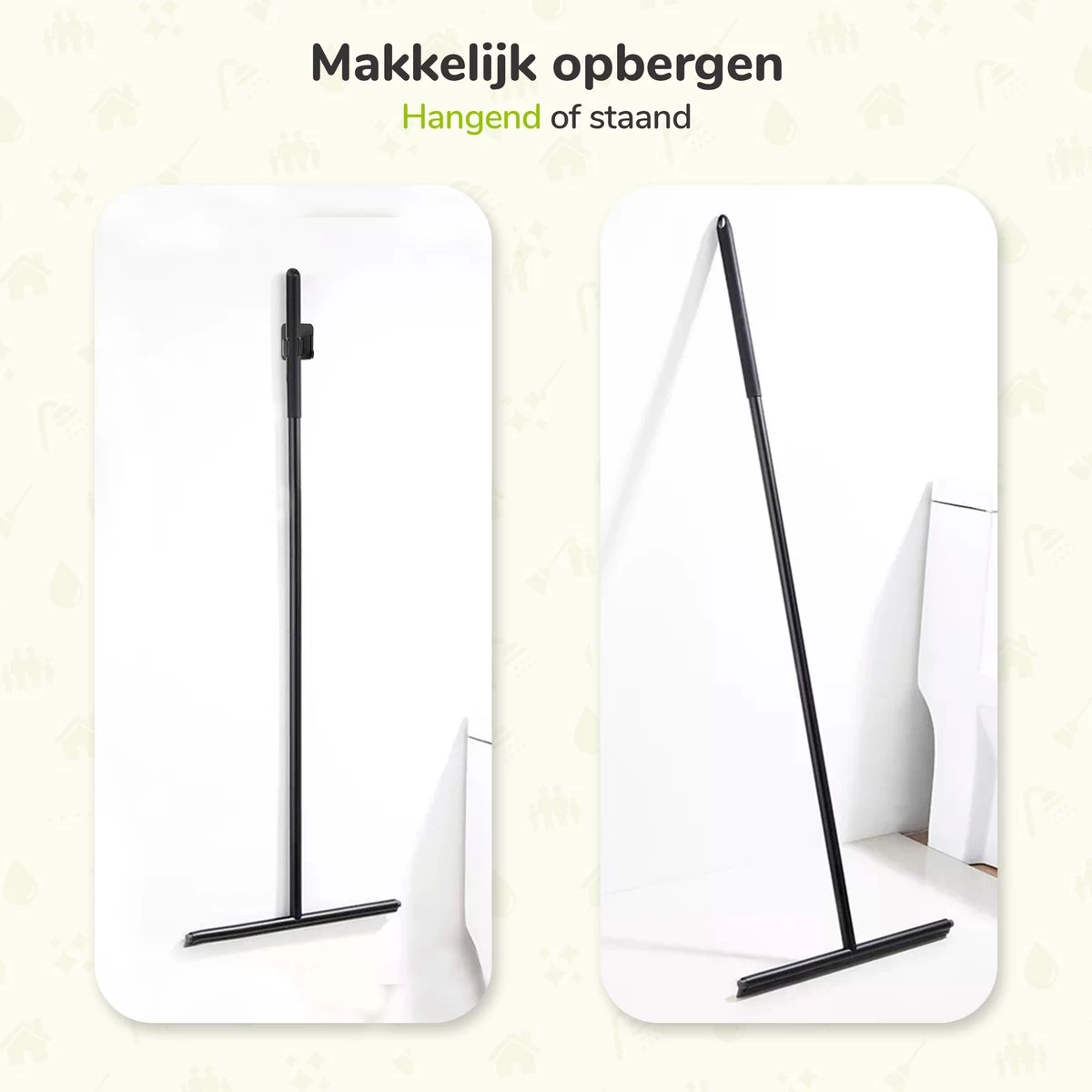 Net een nieuwe badkamer met inloopdouche? Frustreer jezelf dan niet met een schrale houten vloerwisser. Ga voor luxe en gebruiksgemak. Een zwarte vloertrekker met steel trekt goed droog én is een aanwinst voor het badkamerinterieur!