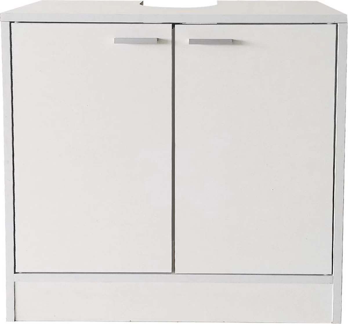 Deze onderkast voor onder de wastafel is ideaal voor elke badkamer. Het meubel is ruimtebesparend en biedt voldoende opbergmogelijkeden zodat uw badkamer ordelijk blijft. Twee openslaande deuren met een grote open opbergruimte en een legplank. Het melamine oppervlak zorgt ervoor dat dit badkamermeubel zeer eenvoudig kan worden gereinigd en minder gevoelig is voor vocht. Let op levering exclusief wasbak, de kraan en spiegel en de hoogte is 60 cm. Indien de wastafel hoger aan de muur is gemonteerd dan kan er een open ruimte tussen de wastafel en de onderbouwkast ontstaan. Kleur: wit. Afmetingen: hoog 60 cm breed 60 cm diep 30 cm. Levering is inclusief handleiding en benodigde montagematerialen.