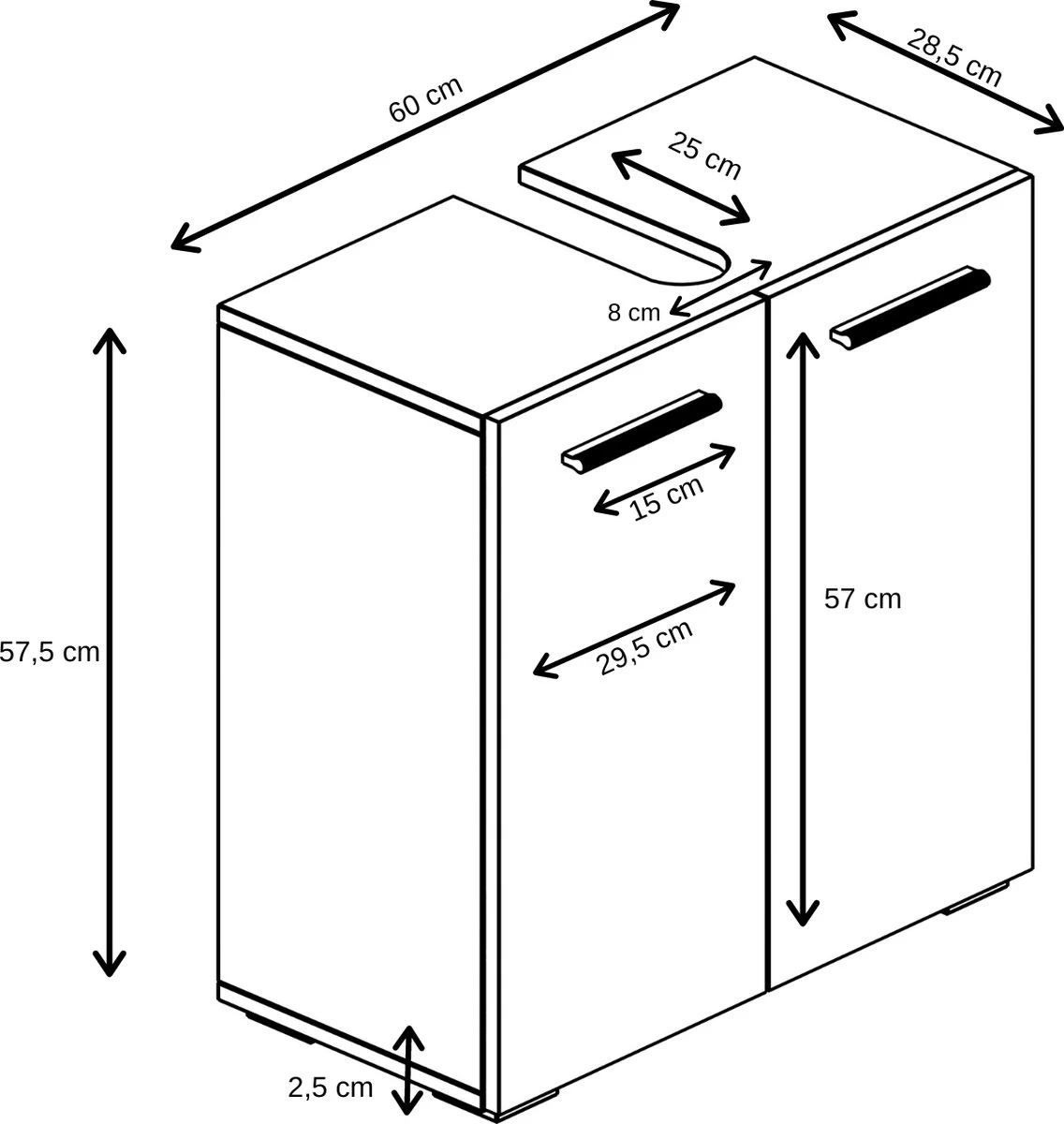 Wastafelkast Jupiter is een badkamerkast voor onder een hangende wastafel. Deze wastafelkast is bedoeld om iedere badkamer van extra bergruimte te voorzien en een moderne en luxe uitstraling te geven. De wastafelkast is gemaakt van hoge kwaliteit spaanplaat en vanwege zijn strakke afwerking ook makkelijk schoon te maken.