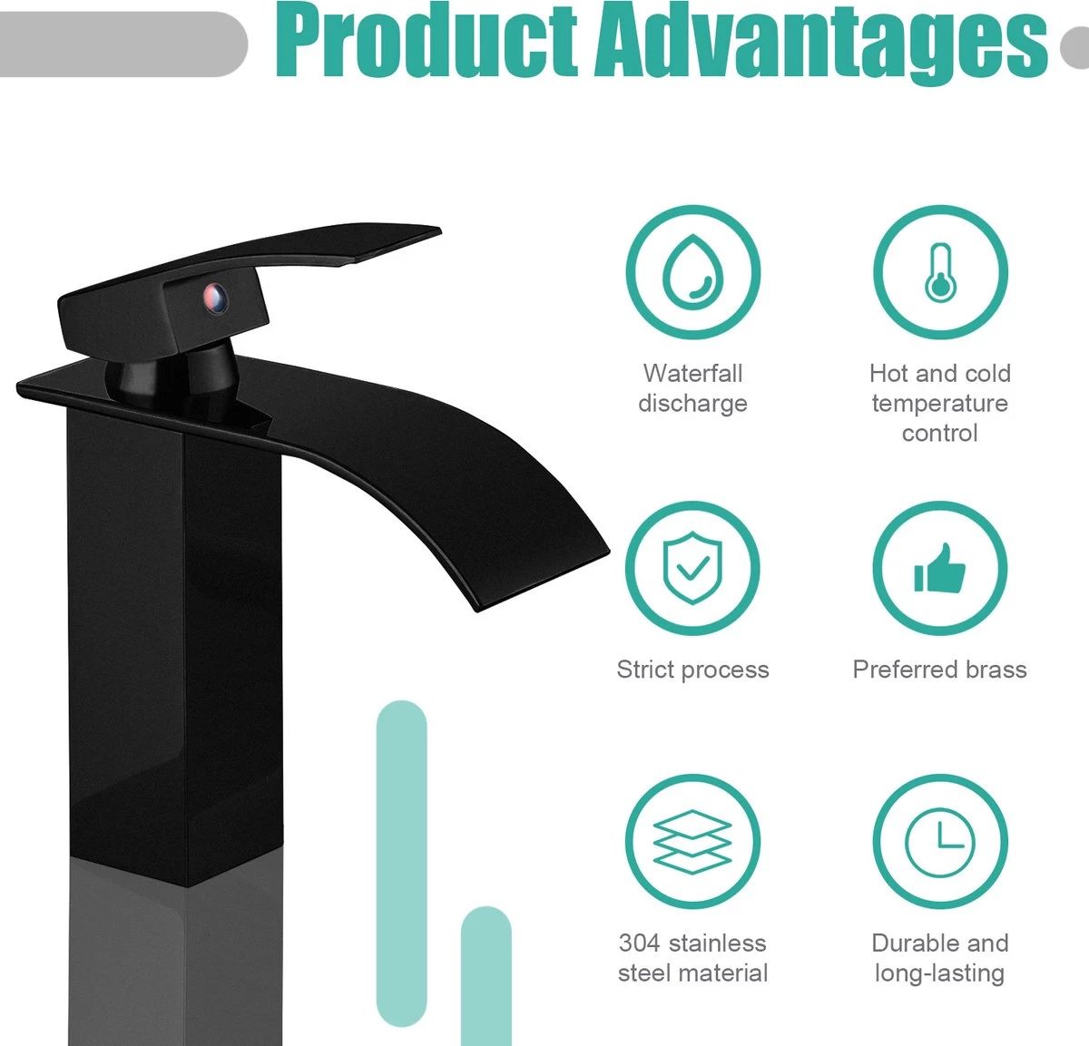 - 【Cascade-klep】 De tapbak neemt een ultradunne cascade-outputontwerp aan, verminder spatten en helpt een constante en regelmatige stroom te behouden. Tegelijkertijd is het interne ontwerp van het huidige beperkingssysteem kan u helpen water met 30%te besparen.
