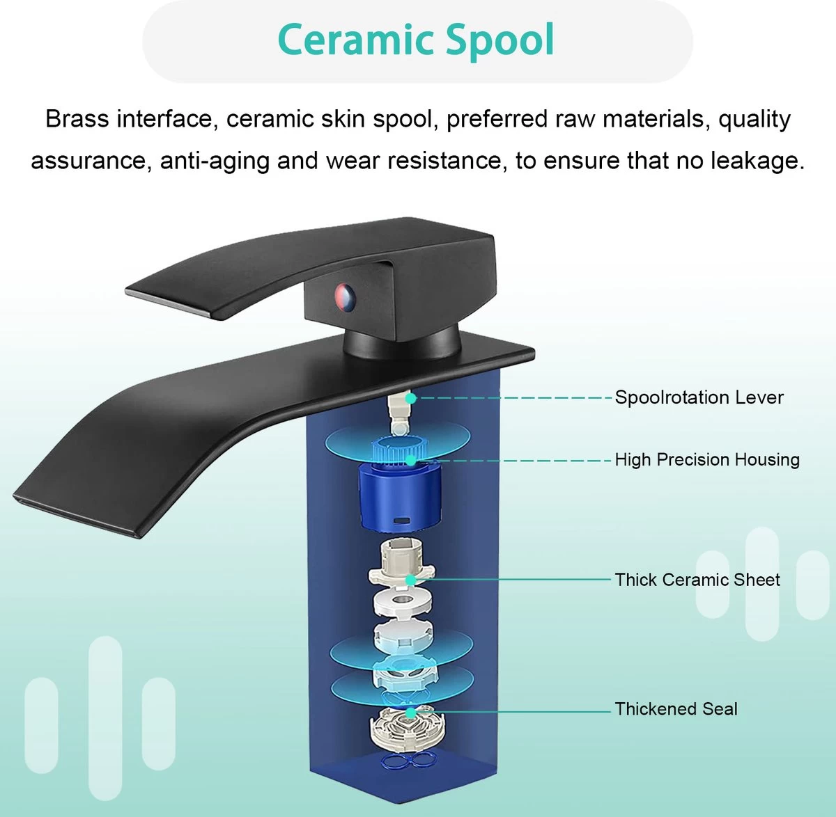 - 【Keramische cartridge】 De geïntegreerde cascade -kraan is uitgerust met een keramische cartridge die een goede afdichtingsprestatie heeft en tegelijkertijd de juiste werking van het handvat waarborgt. Keramische klep van hoge kwaliteit met slijtvastheid En voor veroudering, zonder watertanden, waarmee u meer dan 30% water kunt besparen.
