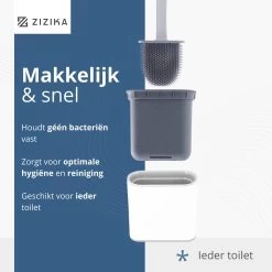 Gemakkelijk schoon te maken – De borstelkop is plat en compact, ideaal om gemakkelijk alle hoekjes van het toilet te bereiken. Met name het schoonmaken van: de toiletdekselrand, onder de toiletbril, de nis tussen het toilet en de muur en uiteraard ook in de groef van het toilet. Dit alles zal geen enkel probleem meer zijn met onze ZIZIKA flexibele toiletborstel.