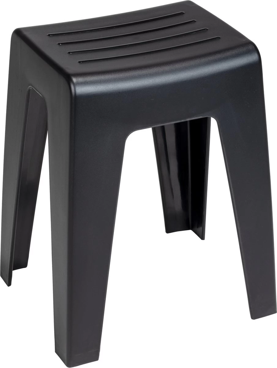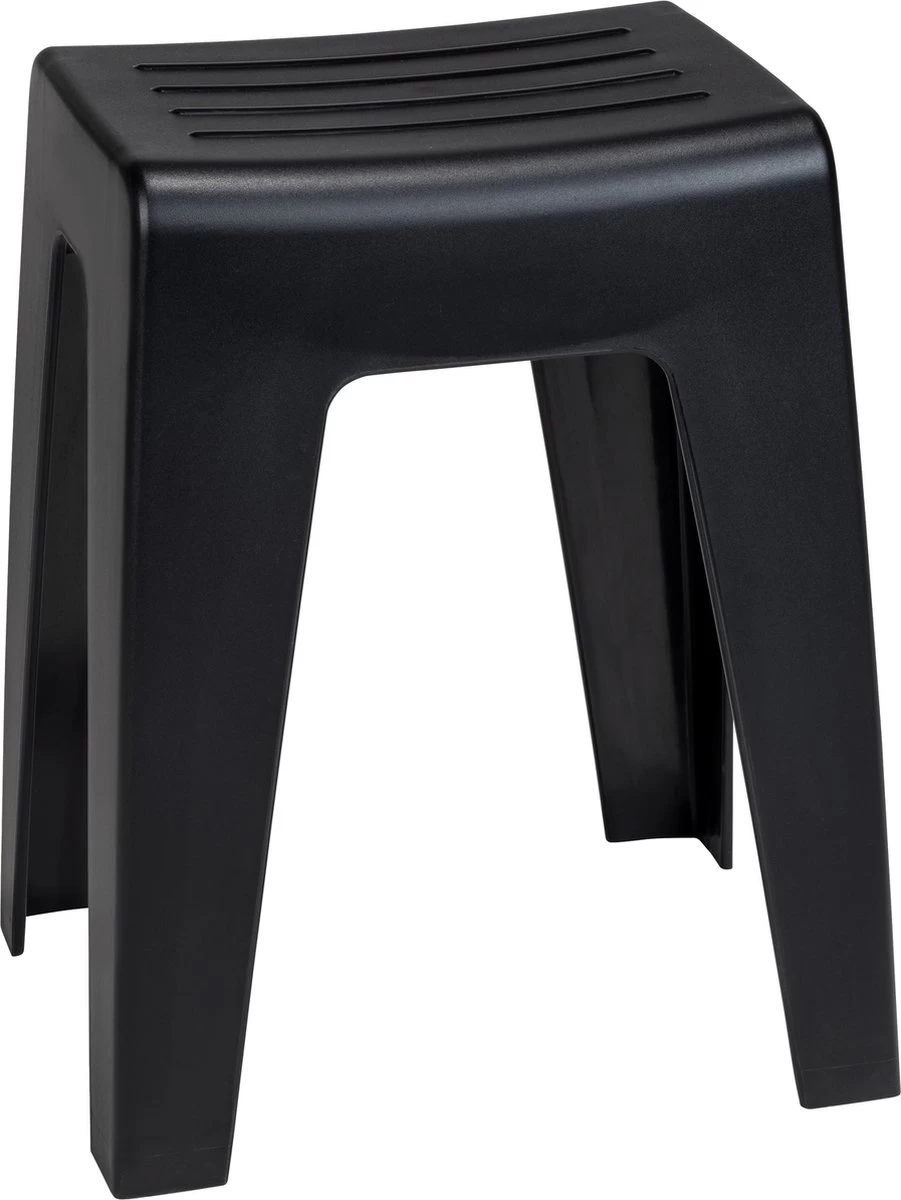 De degelijke badkamerkruk is in zwart maar ook in een witte en in een grijze kleur verkrijgbaar.