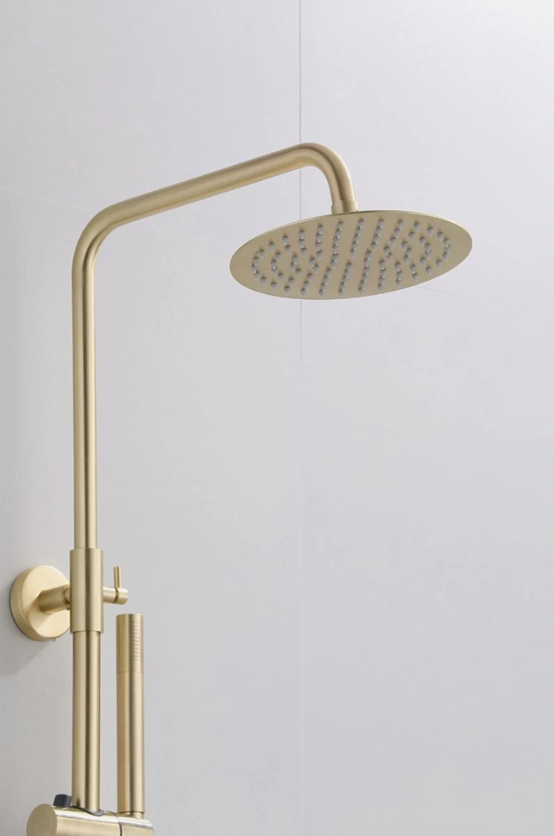 Heerlijk douchen begint met een fijne regendouche met een krachtige waterstraal. Met de Wesseling & Bos Atlanta Mat Goud Geborsteld doucheset voeg je eenvoudig genot én een luxe upgrade toe aan jouw badkamer.
