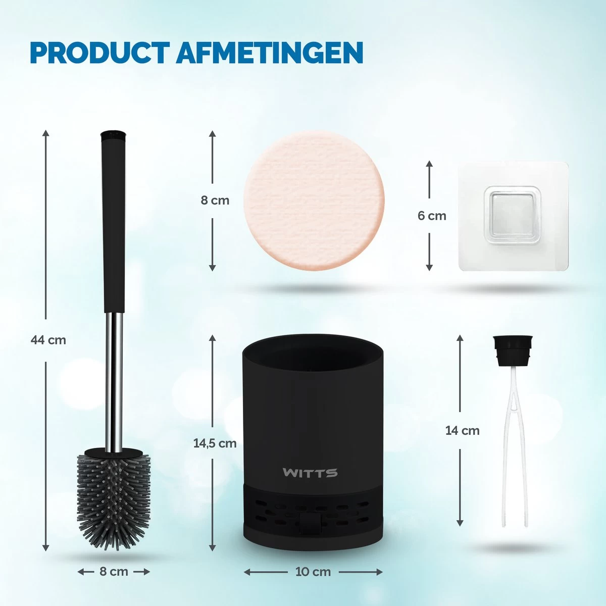 De hygiënische WITTS toiletborstel met houder is een aanwinst voor elk toilet. De innovatieve borstel maakt het reinigen super gemakkelijk en zorgt voor een ultiem gebruiksgemak en optimale hygiëne. Het stijlvolle design past in elk interieur en de houder kan op de grond geplaatst worden of eenvoudig worden opgehangen met een sterke plakstrip. Daarnaast is de houder voorzien van een ventilatie & water-absorberend opvangsysteem voor optimale hygiëne. Dankzij het ergonomische design maak jij het toilet in een handomdraai weer schoon en fris.