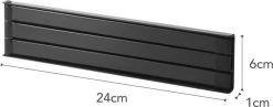 De theedoekhouder is gemaakt van gepoedercoat metaal en het stijlvolle design past in vrijwel elke keuken. De handdoek hanger is beschikbaar in de kleuren wit en zwart. De houder heeft een afmeting van 24 cm breed, 1 cm dik en 6 cm hoog.